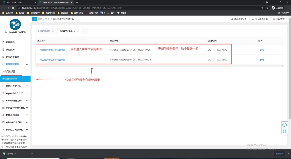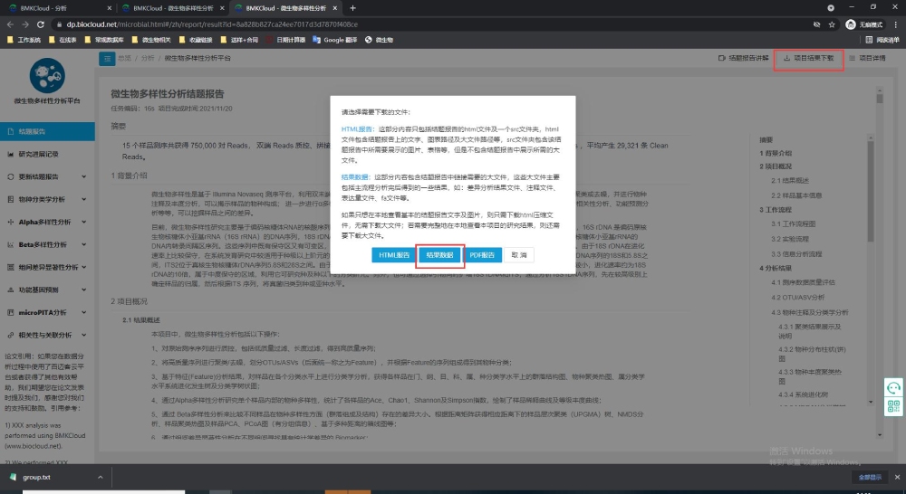6 新報告結(jié)果下載:打開新的報告,點(diǎn)擊這份報告的右上角-項目結(jié)果下載-進(jìn)行下載結(jié)果數(shù)據(jù),就可以得到更新的這份報告的全部結(jié)果。