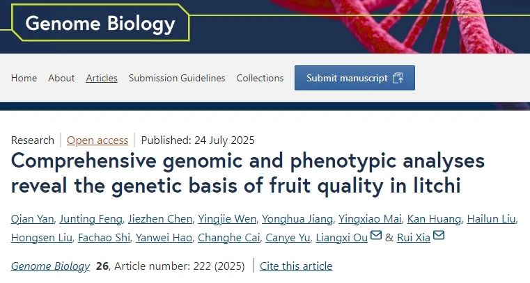 英文題目:Comprehensive genomic and phenotypic analyses reveal the genetic basis of fruit quality in litchi