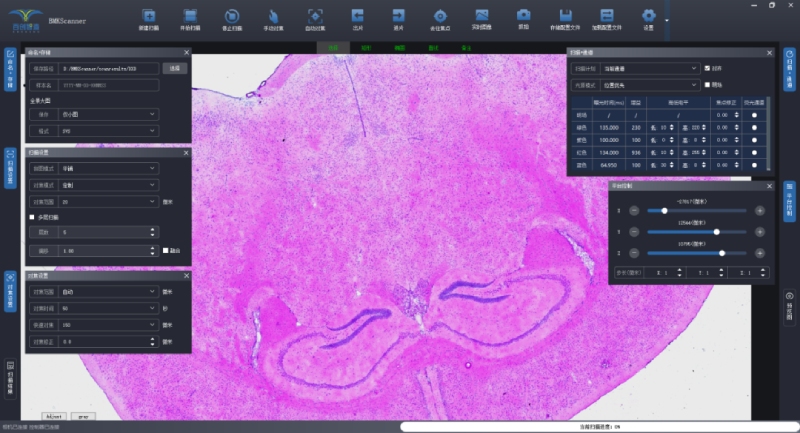 在樣本完成質檢并合格后,需要對研究的目標區(qū)域進行確認,可以利用BH1000進行高清(標配高品質平場復消色差物鏡,20×物鏡,數(shù)值孔徑N.A.≥0.8,?同時最多支持拓展4個物鏡)的明場成像來進行判斷。