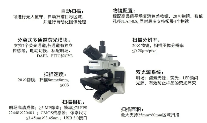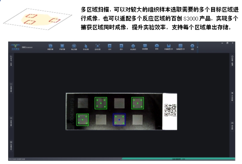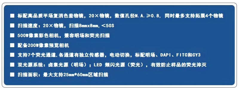 50S內可完成8mm*8mm 20X掃描,支持掃描25mm*60mm,原片明場及原片熒光成像