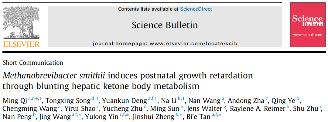 近日,岳麓山實(shí)驗(yàn)室畜禽品種創(chuàng)制中心印遇龍?jiān)菏繄F(tuán)隊(duì)在Science Bulletin(IF 21.1)發(fā)表研究成果,題為“Methanobrevibacter smithii induces postnatal growth retardation through blunting hepatic ketone body metabolism”。