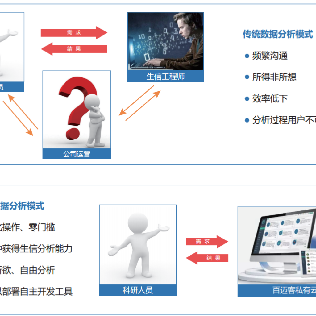 科研項(xiàng)目對于個性化分析需求量日益增加,在未來,快速完成生信分析是科研團(tuán)隊(duì)的必備能力之一,借助百邁客云科研人員可以自主完成生信數(shù)據(jù)的深入挖掘,再也不用受制于人。