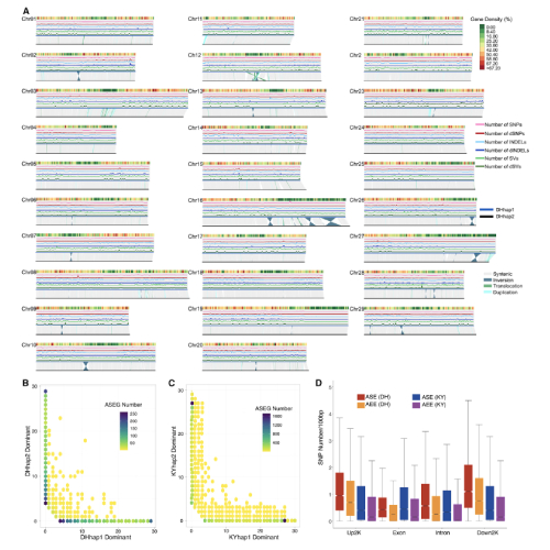 獼猴桃單倍型基因組的等位基因變異和等位基因特異行表達(ASE)基因 (Han X et al., Molecular Plant, 2023)