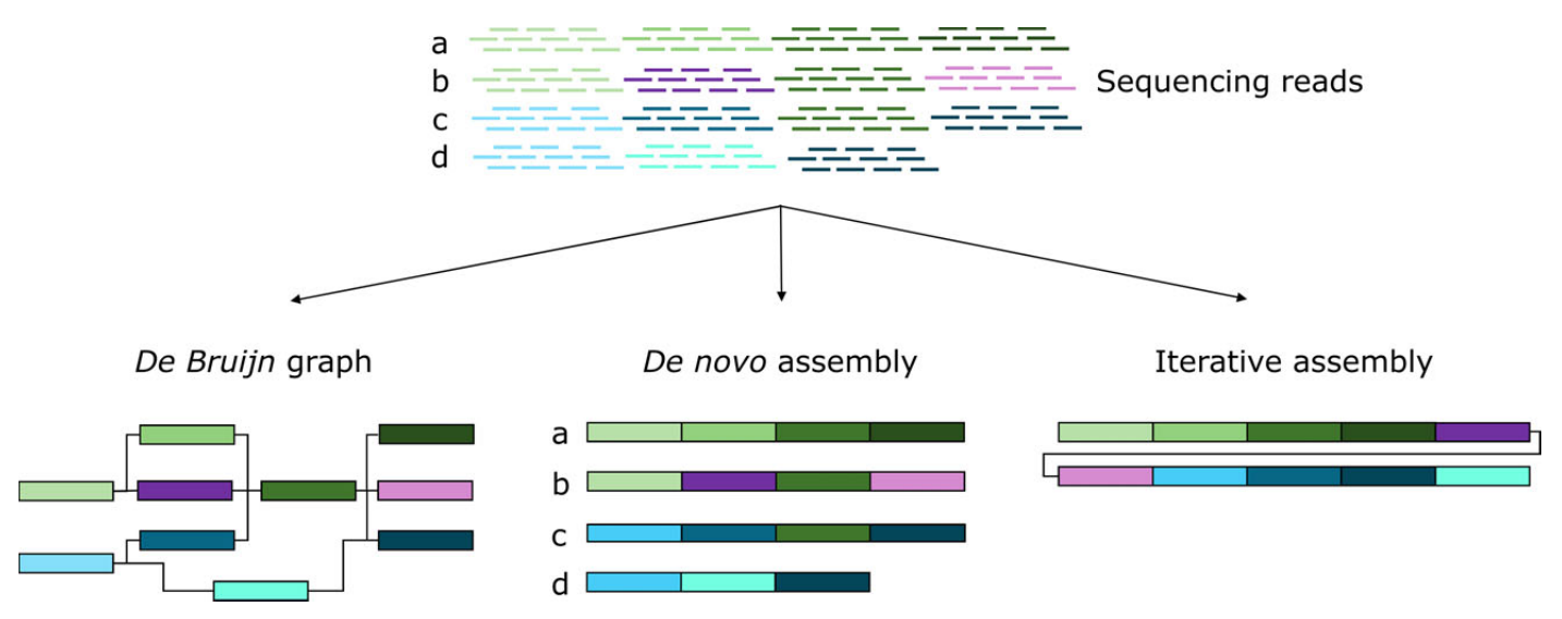 泛基因組主要有3種構建方法:Map to pan,Iterative assembly和De novo assembly。從頭組裝(De novo assembly):是構建泛基因組或者參考基因組最經典的方法,分別對多個個體分別進行從頭組裝并且注釋,然后將所得的每個個體的組裝好的序列與參考序列基因組進行互相比對,找出比對不上的區(qū)域或者基因,這些個體獨特的基因就是非核心基因。