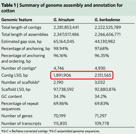 1、陸地棉和海島棉基因組組裝:
