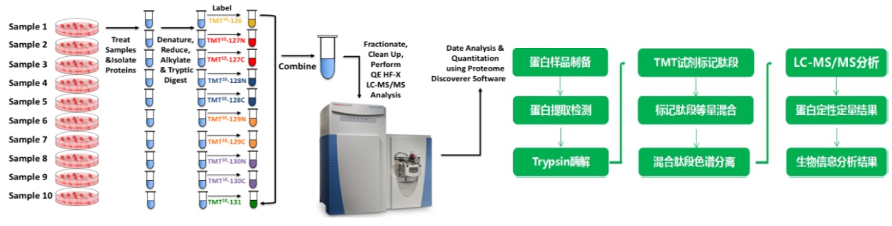 TMT(Tandem Mass Tags)有美國(guó)Thermo 公司研發(fā)的多肽體外標(biāo)記定量技術(shù),采用16種同位素標(biāo)簽,通過(guò)特異性標(biāo)記多肽的氨基酸基團(tuán),一次上機(jī)可實(shí)現(xiàn)16不同樣本中蛋白質(zhì)的相對(duì)定量,是近年來(lái)定量蛋白質(zhì)組學(xué)常用的高通量篩選技術(shù)。